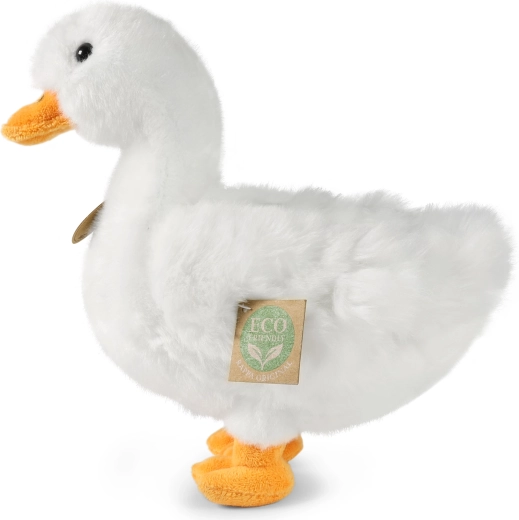 Пълнежът от рециклирани материали (основно PET) е напълно безопасен и потвърждава устойчивия подход на марката. Патицата е чудесен подарък за деца и любители на животните, които търсят екологична плюшена играчка без компромис в качеството.