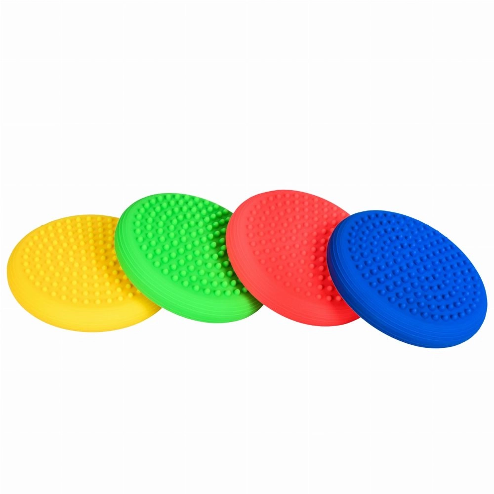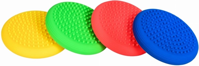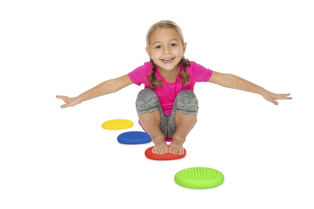 Цветните дискове мотивират децата да се движат, развиват координацията, проприоцепцията и укрепват дълбоката стабилизираща мускулатура.