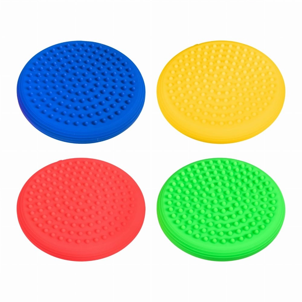 Дисковете са изработени от издръжлив, еластичен материал, приятен на допир и устойчив на ежедневна употреба. Безопасността е на първо място – продуктът е без фталати, BPA и тежки метали и отговаря на стандарта CE. Подходящи са за детски игри, в ерготерапия и физиотерапия, както и като масажни подложки за стимулиране на стъпалата.