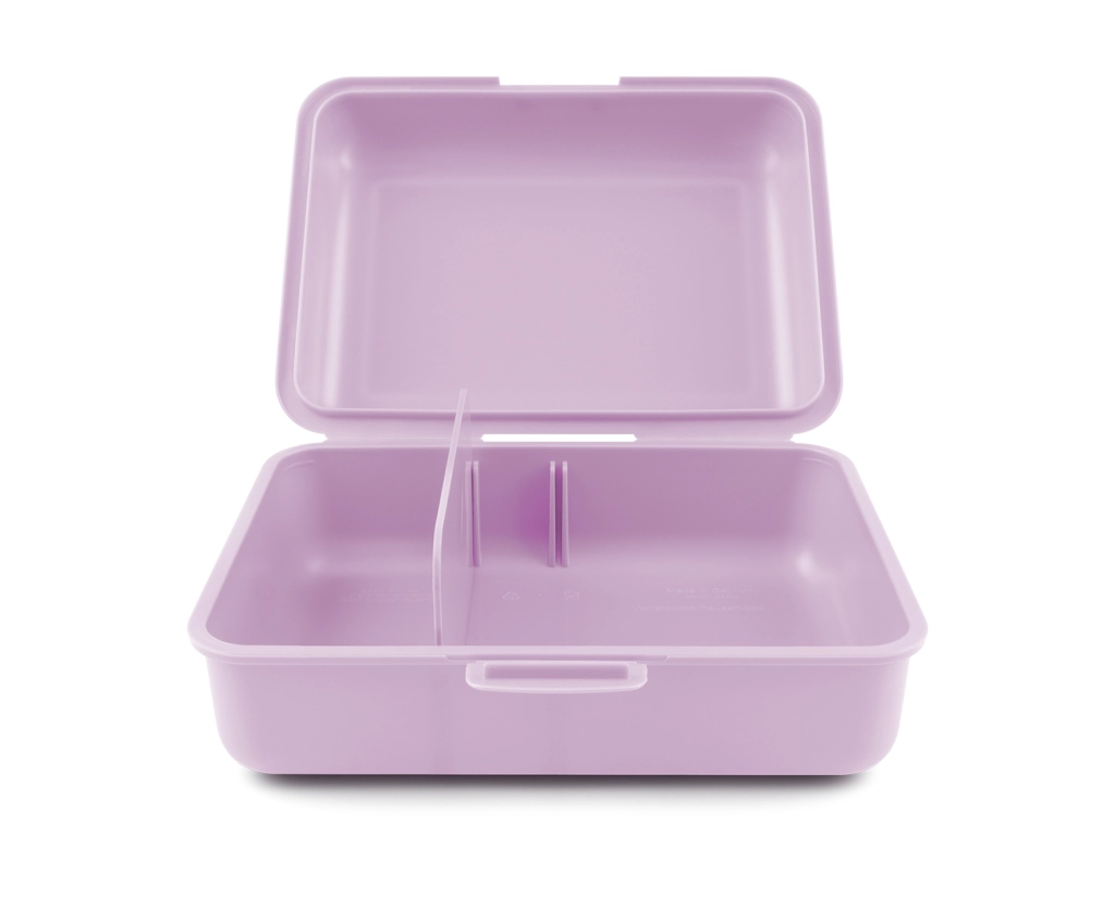 Вътрешният разделител позволява да отделите плодове, хлебни изделия или зеленчуци, така че отделните части на закуската да не се смесват. Кутията е лека, компактна и лесно се побира в ученическа чанта или раница.