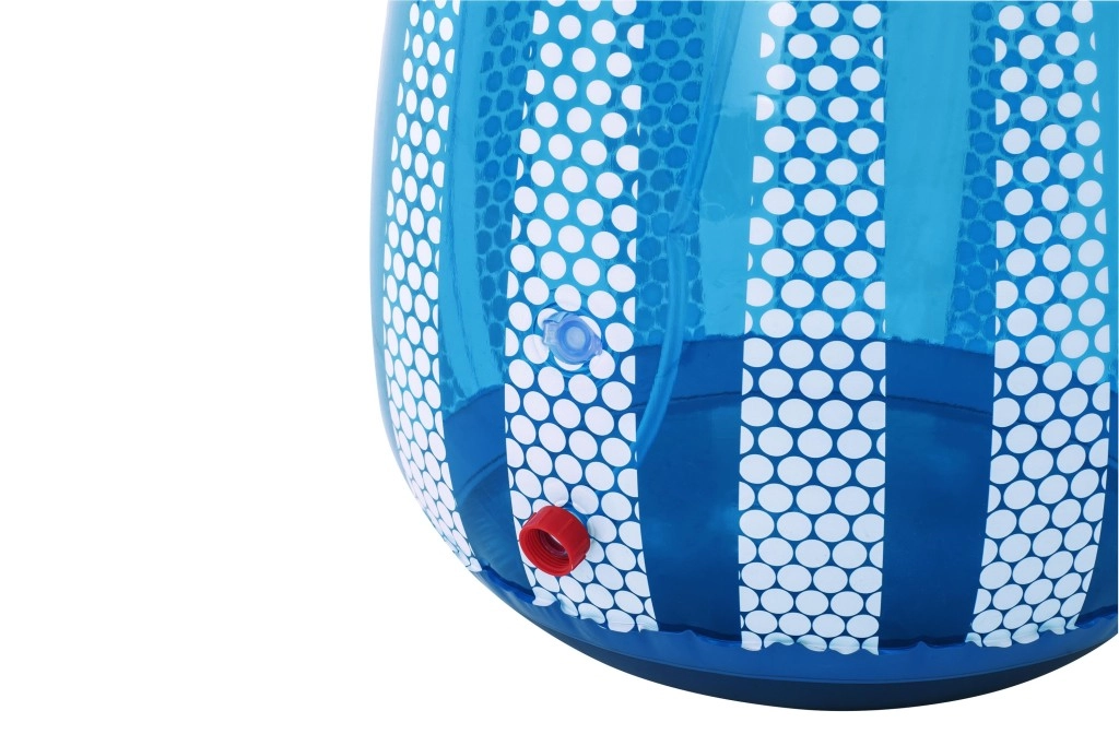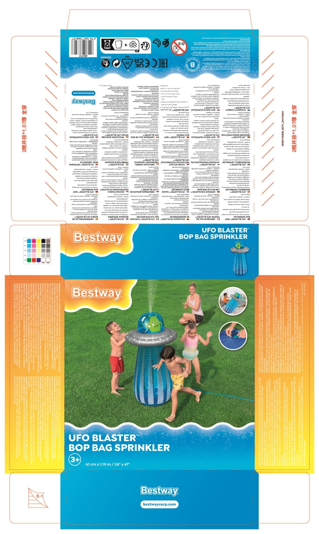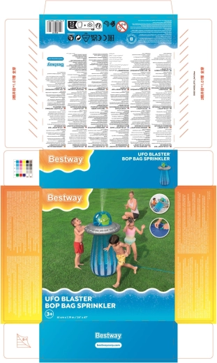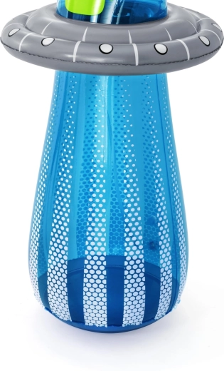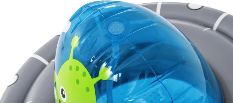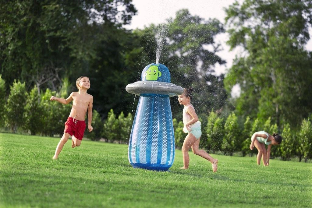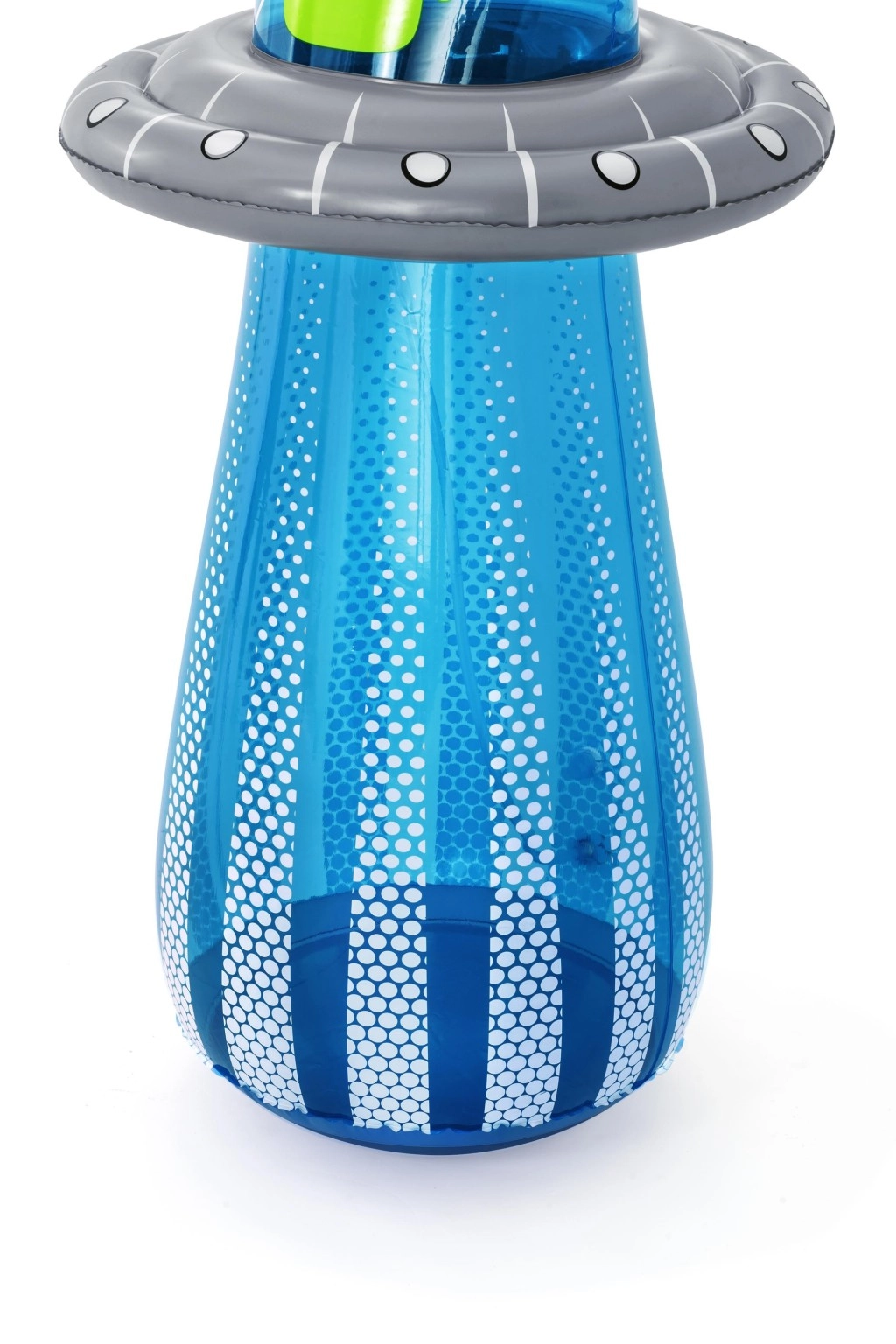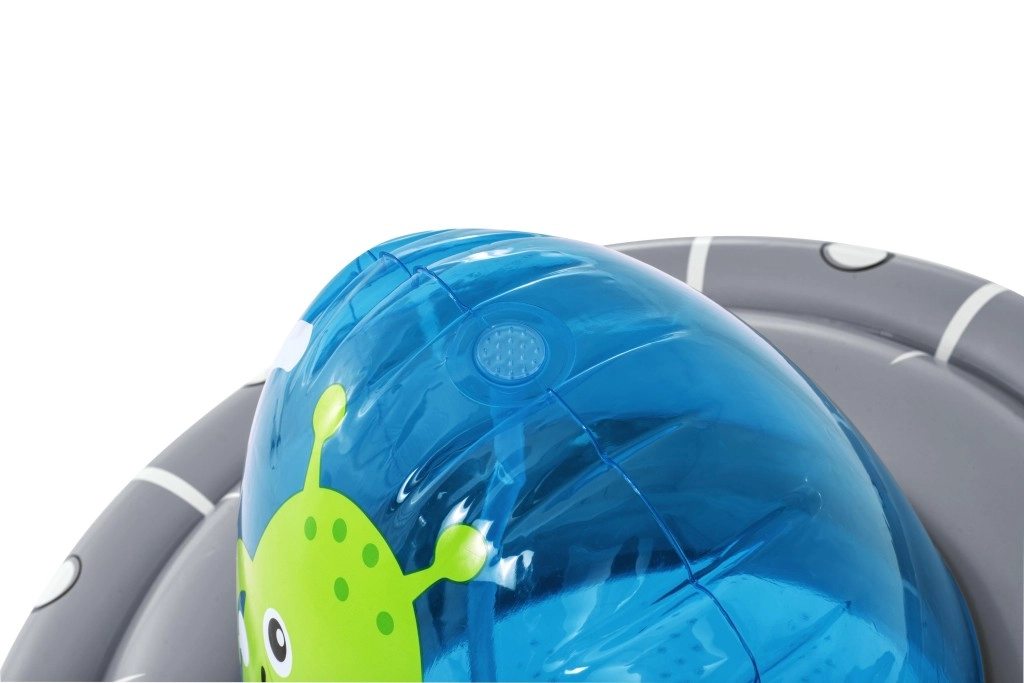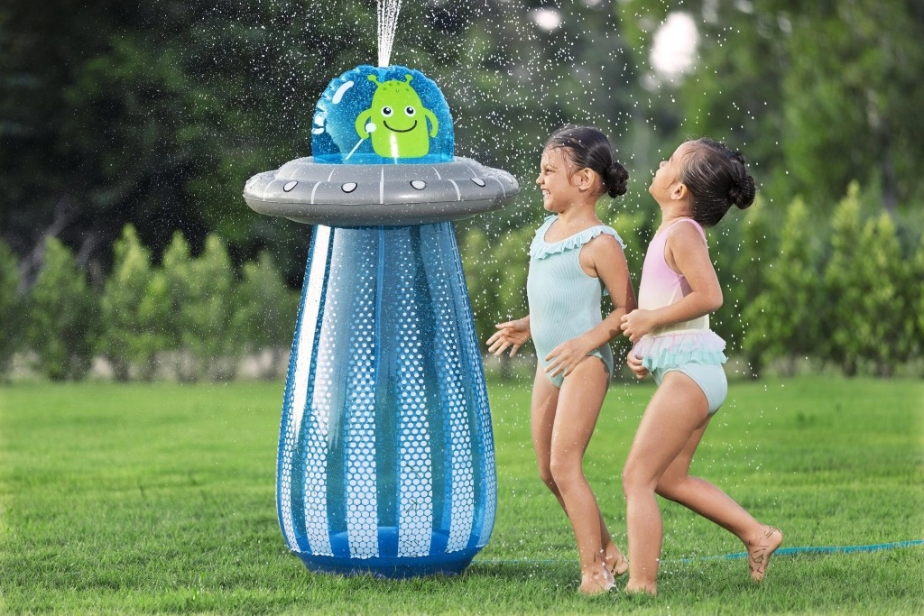 Надуваемото НЛО с приятелско извънземно носи на децата актив movement и водно освежаване в едно. След свързване на маркуча от горната част се пуска водна фонтана, която превръща градината в игрища за летни забавления. Благодарение на вградената водна камера в долната част играчката е стабилна и еластично се връща след удари.