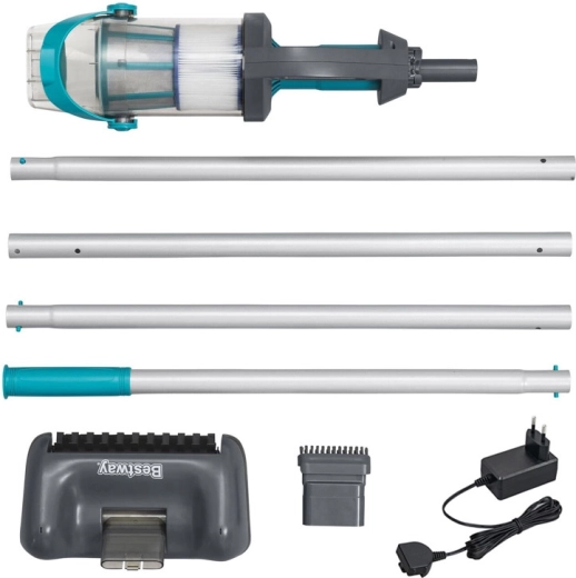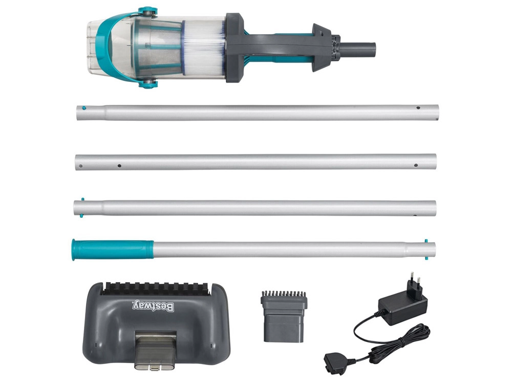Поддържайте басейна си кристално чист с ръчната безжична прахосмукачка BESTWAY AquaGrip. Предлага до 90 минути работа, прозрачен контейнер 2 l, двойна филтрация (неръждаема цедка + филтър тип VI) и 2 сменяеми глави за дъно, стени и ъгли. Благодарение на лекия телескопичен прът (2 m), LED осветление и защита от работа на сухо почистването е бързо, безопасно и ефективно както за надземни, така и за вкопани басейни.