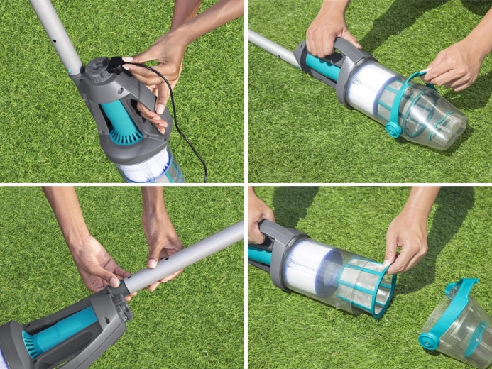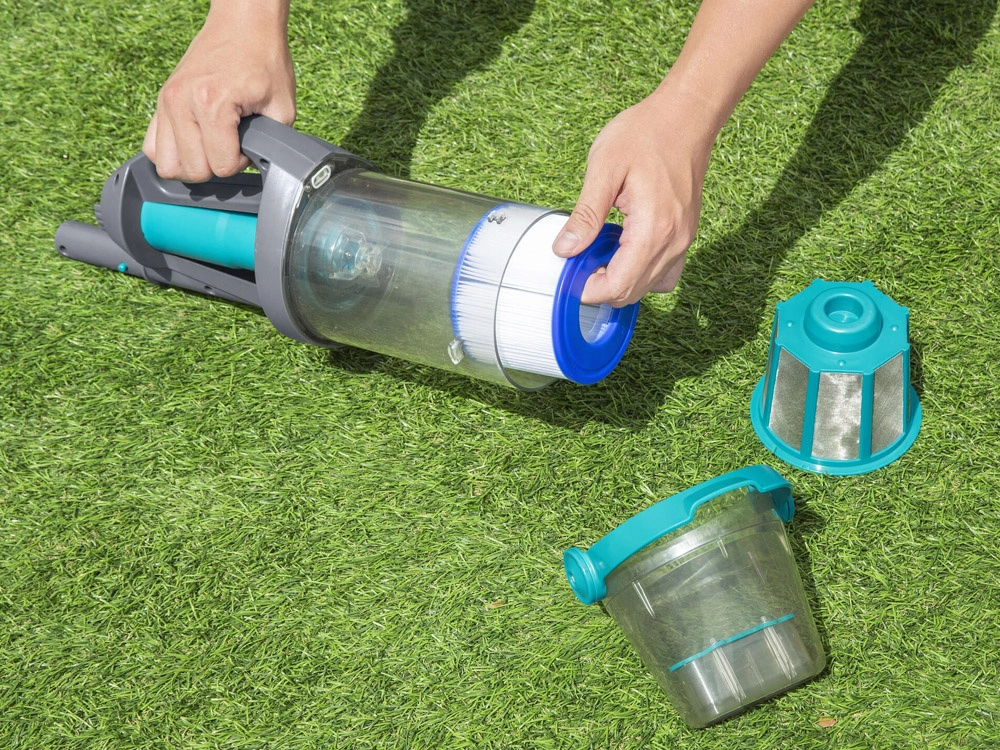 BESTWAY AquaGrip е мощна и практична безкабелна басейнова прахосмукачка, проектирана за редовна поддръжка и основно почистване. Прозрачният контейнер с обем 2 литра позволява незабавен контрол на запълването, а двойната филтрация улавя всичко — от листа до фини частици. Автоматичните сензори за потапяне защитават мотора — прахосмукачката се активира само под вода.