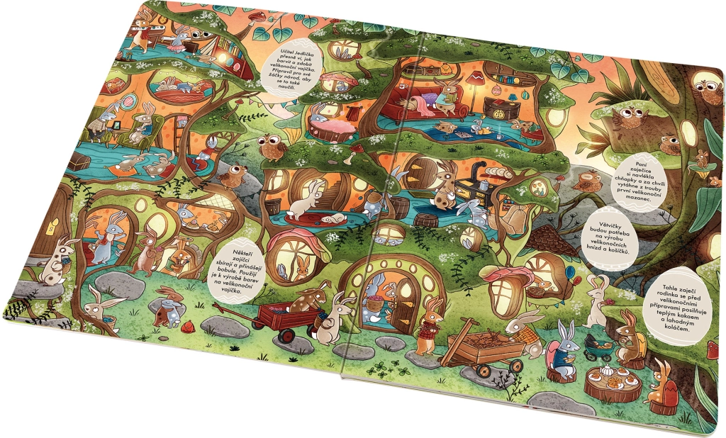 На всяка страница децата откриват няколко великденски яйца с кратки текстове, задачи и дребни предизвикателства. Затова книгата е идеална както за споделено четене, така и за самостоятелно откривателство.