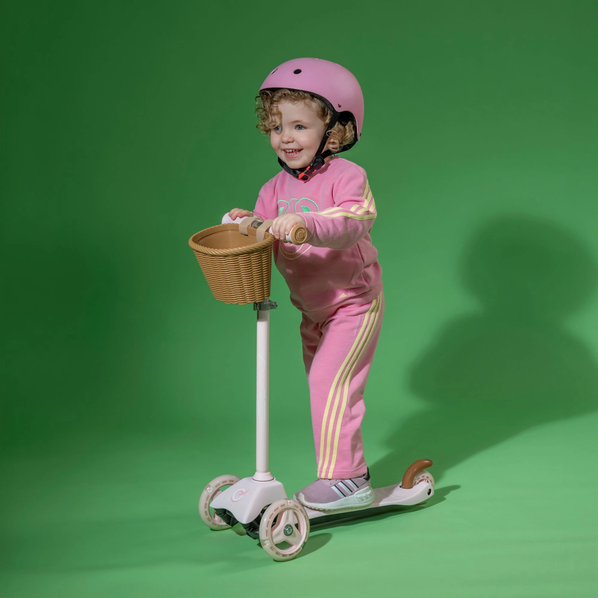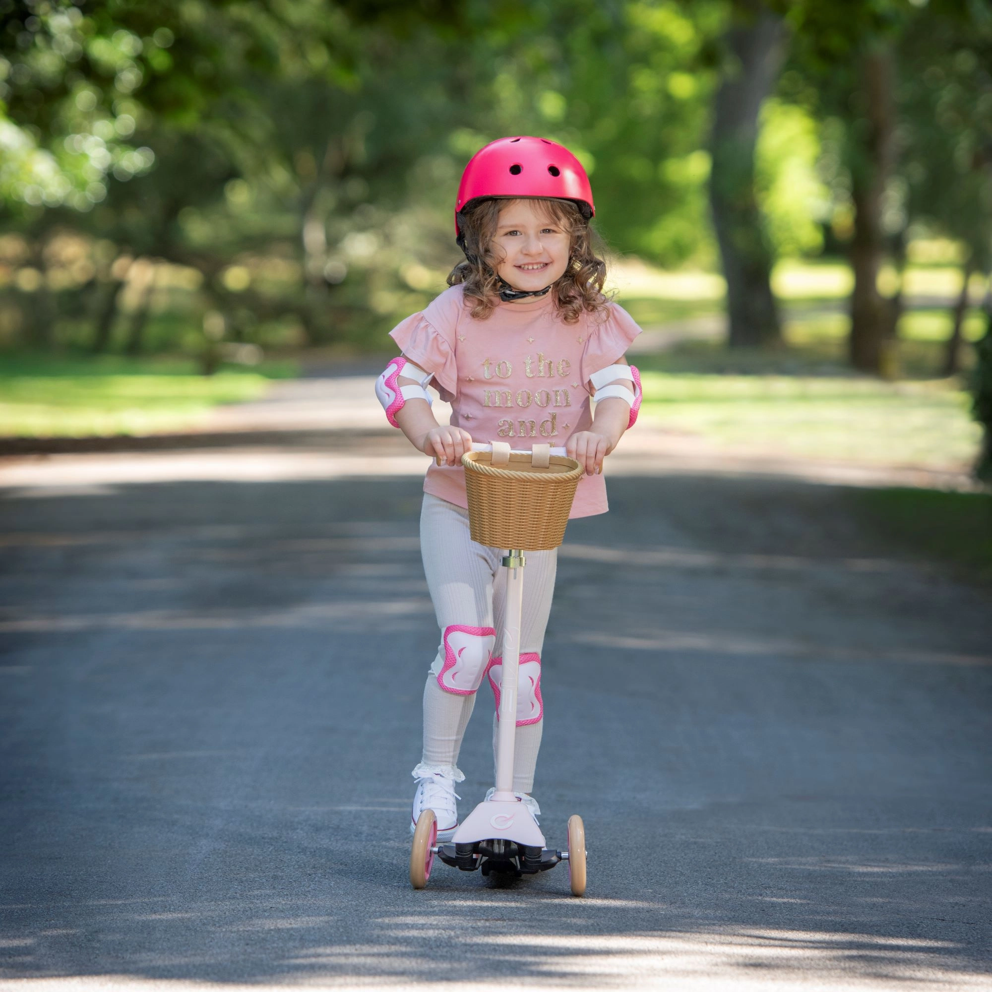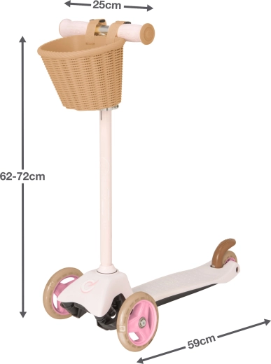 Практичната подвижна кошничка на кормилото позволява да вземете любимите дребни вещи навсякъде със себе си. Регулируемата височина на кормилото 62–72 cm и леката конструкция улесняват управлението и пренасянето. Благодарение на атрактивния розов цвят децата бързо я заобичат, а родителите оценяват обмислените детайли за безопасност.
