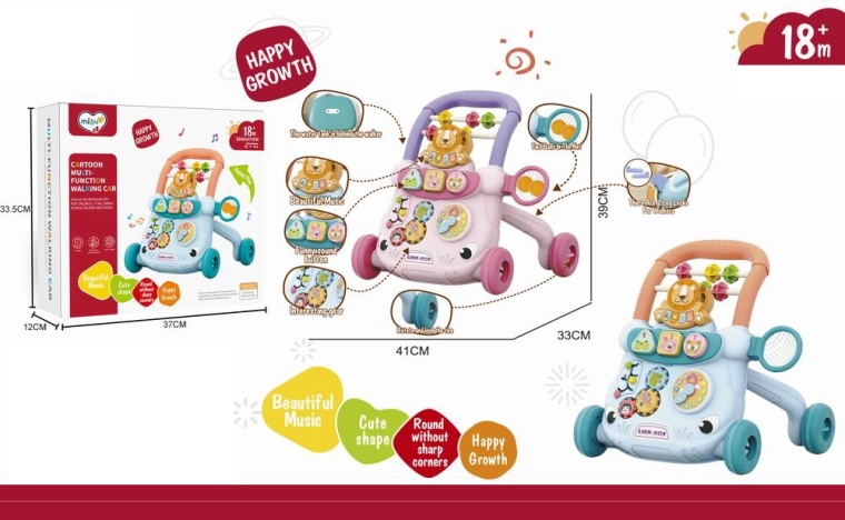 Розовата проходилка за бутане във форма на лъв е чудесен помощник за децата, които се учат да ходят. Лекият и стабилен дизайн от безопасна пластмаса без остри ръбове подкрепя увереността при движение, а вградените звукови ефекти стимулират сетивното възприятие и мотивират към нови стъпки.
