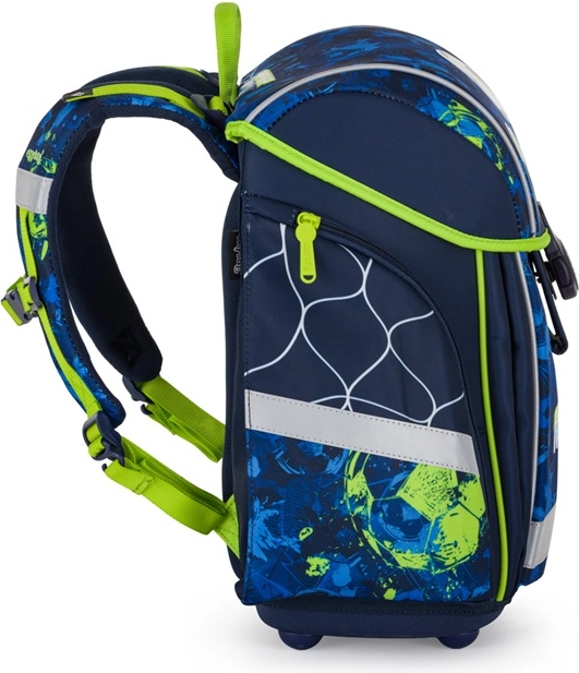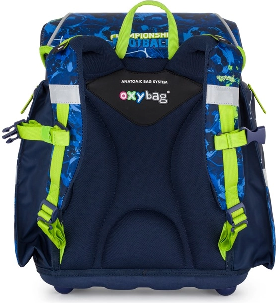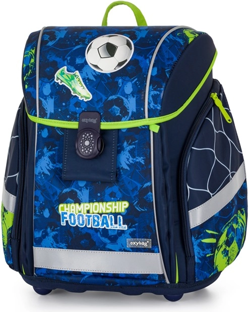 Училищният комплект OXYBAG Premium Light футбол е проектиран за максимален комфорт и безопасност по пътя до училище всеки ден. Леката конструкция с тегло само 970 g, ергономично оформеният гръб и омекотените раменни презрамки от дишащ материал осигуряват удобство през целия ден. Практичното разпределение с основно отделение с разделител, етикет за име и разписание помага да се поддържа ред в учебниците и тетрадките.