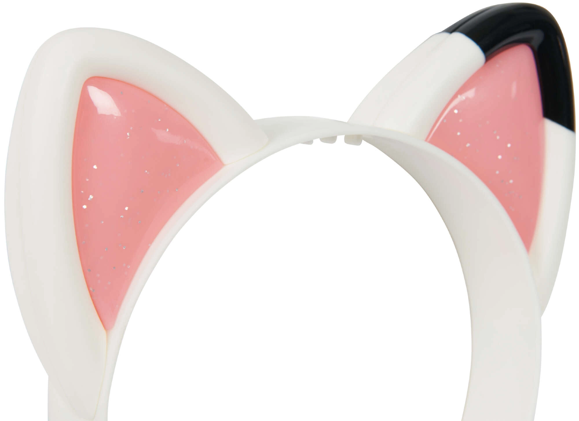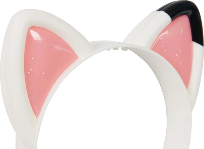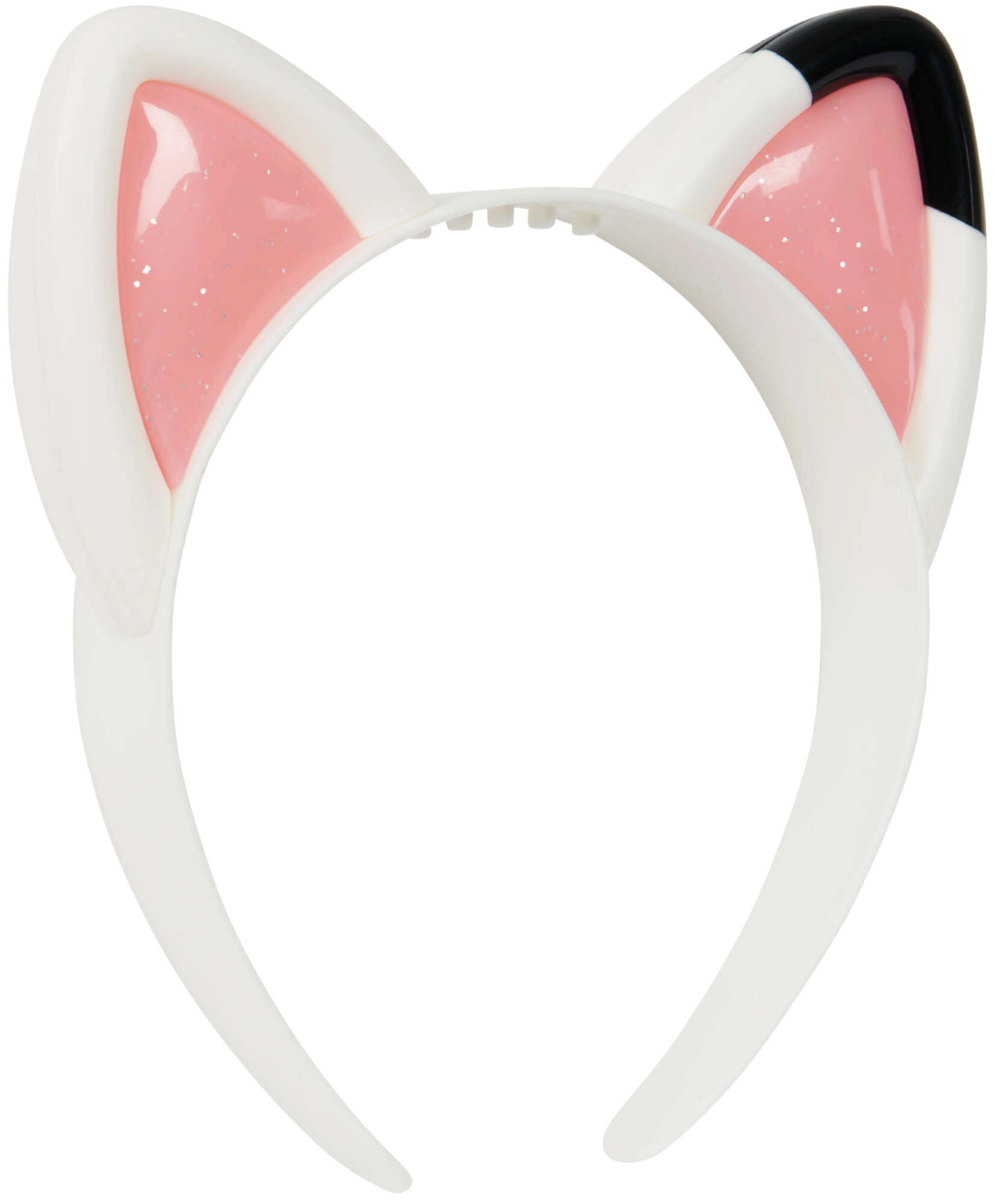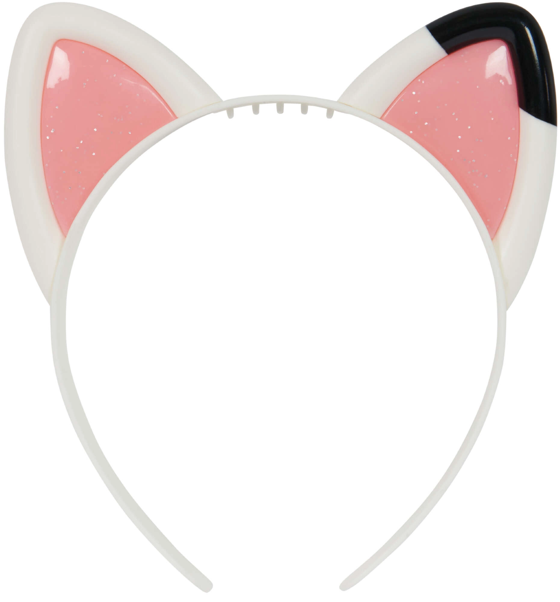 Бялата диадема с розови блестящи вътрешности и черна точка на едното ухо вярно пресъздава сериала визия.
