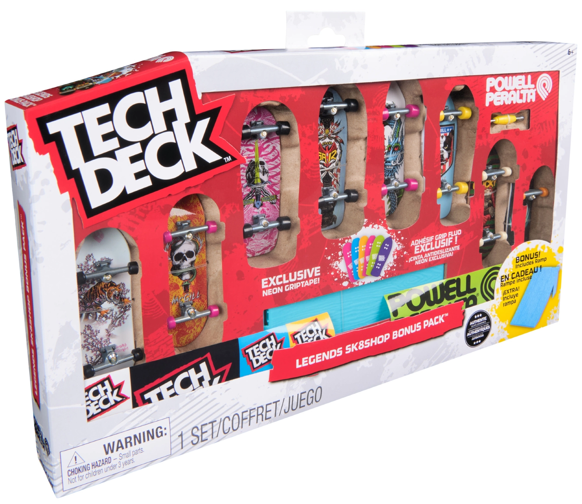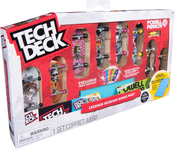 Открийте света на фингърбординга с легендарната марка TECH DECK, която вече над 20 години вдъхновява фенове по целия свят. Този ексклузивен комплект Legends Sk8shop Bonus Pack предлага 8 готови фингърборда с цветни дизайни и неонова рампа за скокове и трикове.