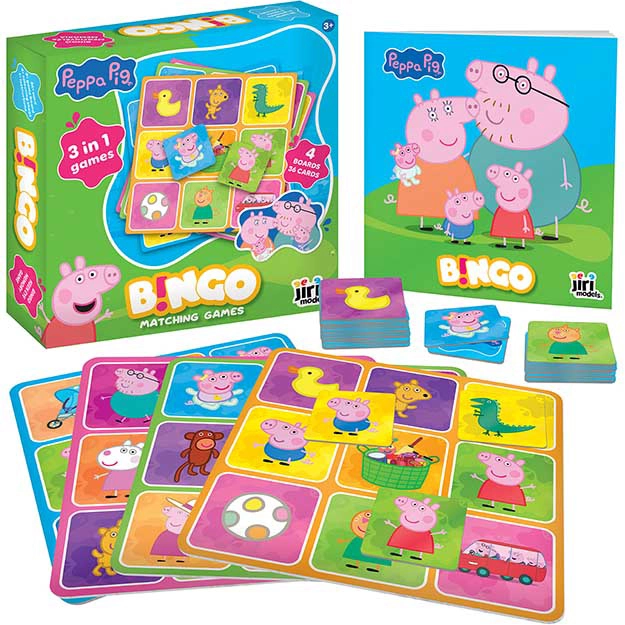 Насладете се на семейно забавление с любимите герои от Прасенцето Пепа. Тази детска версия на бинго е създадена така, че да е лесна за разбиране, бърза и пълна с радост от откриването. Благодарение на трите начина на игра децата няма да скучаят и могат да тренират концентрация, внимание към детайла и игрова стратегия.