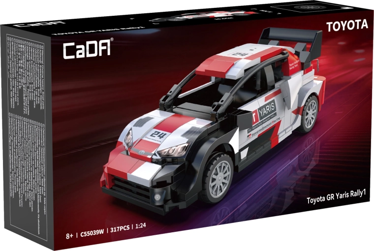Конструкторът CaDA представя спортния автомобил TOYOTA GR YARIS RALLY1 с агресивен силует, състезателни графики и аеродинамични детайли. Благодарение на 317 части ще се насладите на приятното моделистко изживяване, а след завършване ще получите атрактивен модел, подходящ за излагане и за лека игра на бюрото.