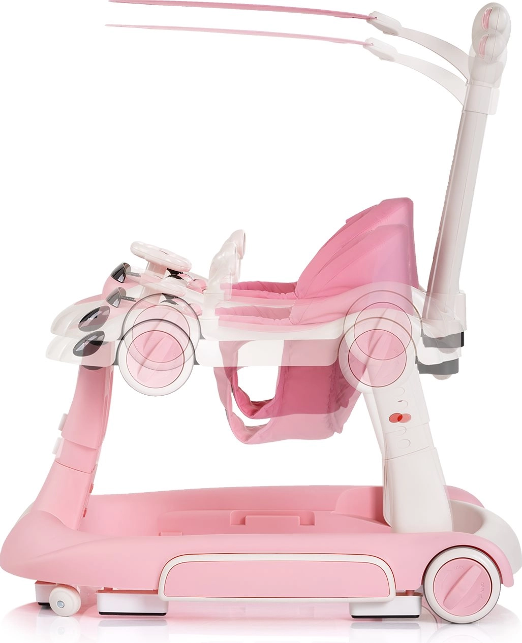 - Използване 5-в-1 – проходилка, люлка, игрови център, режим подскачане и буталка/ездачка за насърчаване на самостоятелното ходене.