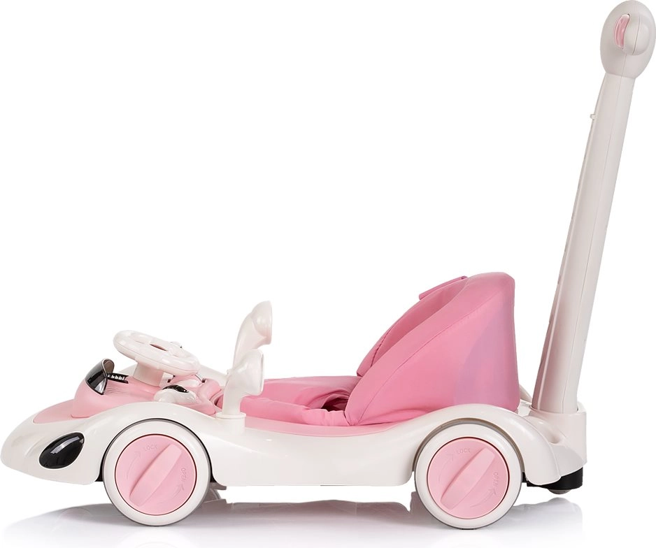 CHIPOLINO Happy Walker 5-в-1 расте заедно с вашето бебе и се адаптира към неговите нужди. От първите стъпки, през успокояващото люлеене, до забавлението с интерактивния панел – всичко в едно стабилно и безопасно решение. Родителската дръжка и сенникът повишават комфорта за детето и родителите при ежедневни разходки у дома и навън.