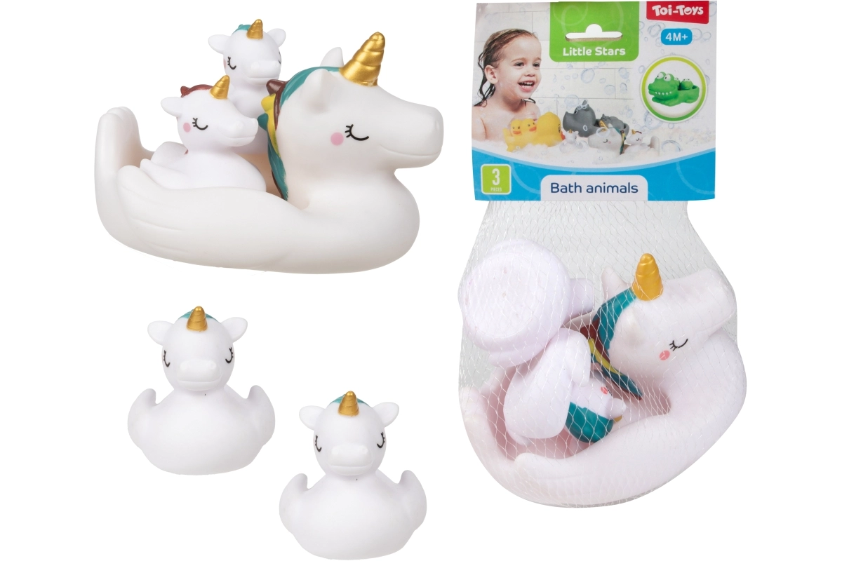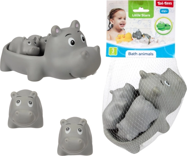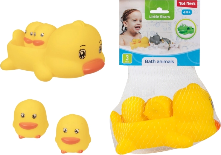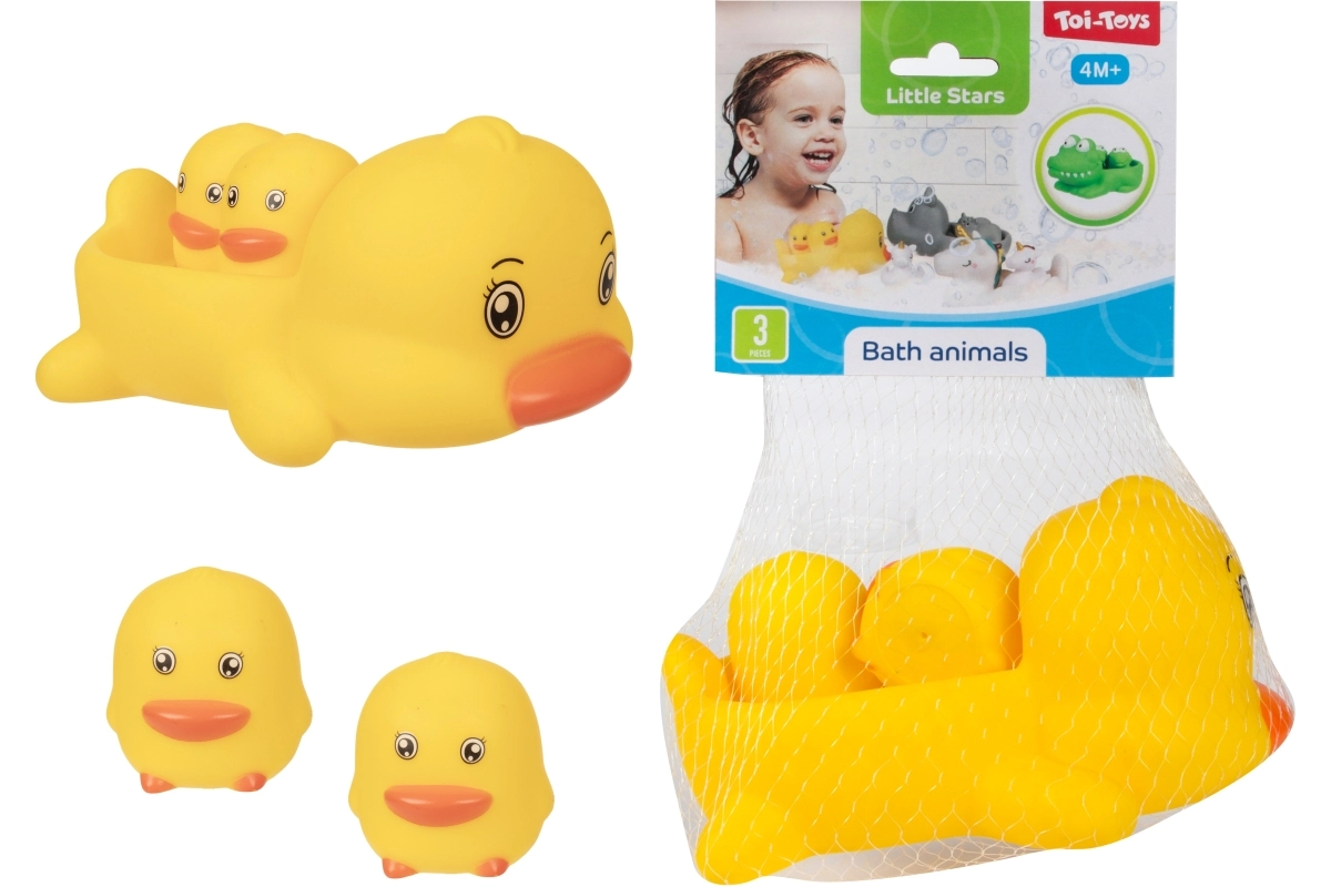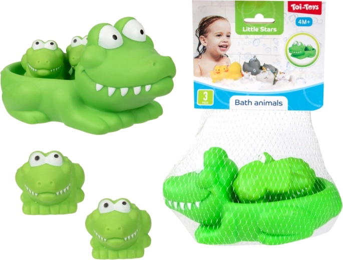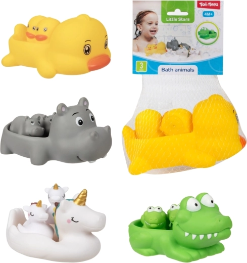 Превърнете къпането във весел ритуал с комплект от сладки водни играчки. Опаковката съдържа 1 по-голямо плуващо животинче и 2 по-малки фигурки, които по-голямото животинче може да вози на гърба си. Играчките са леки, плават и са лесни за хващане дори от малки ръчички. Практично опаковани в мрежичка. Подходящи от 4 месеца.