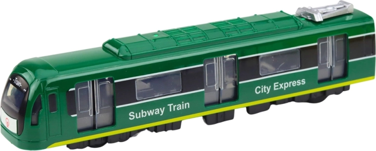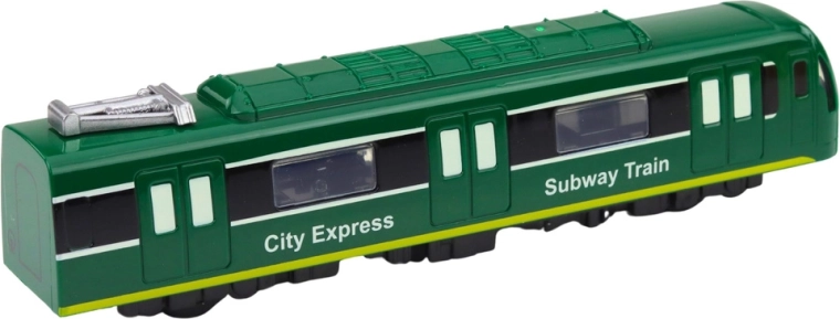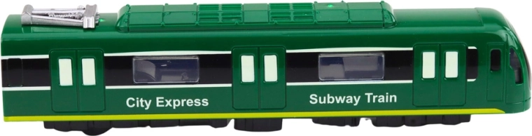 Реалистичният зелен модел метро CITY EXPRESS ще зарадва малките фенове на градския транспорт. Предлага светлинни и звукови ефекти, отварящи се врати, управлявани с плъзгач на покрива, и здраво пластмасово изпълнение. Компактните размери са идеални за игра у дома и развиват въображението и креативността на децата.