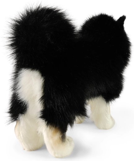 Детайлите на козината, оцветяването и формата на тялото са ръчно изработени, за да изглежда плюшеното куче максимално близко до истинската лапинкойра.