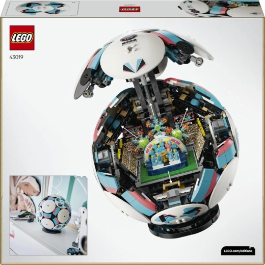 Конструкторът LEGO Editions Футболна топка (43019) ще зарадва всички почитатели на футбола и колекционерите на дизайнерски модели. Благодарение на елементите LEGO Technic топката има автентична кръгла форма, вдъхновена от официална топка размер 5, а повърхността впечатлява с шест стилни декоративни диска. Вътре се крие изненада – миниатюрен стадион с динамична сцена на празненства.