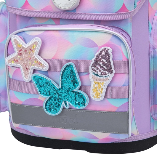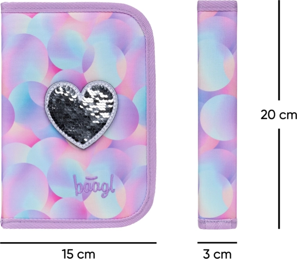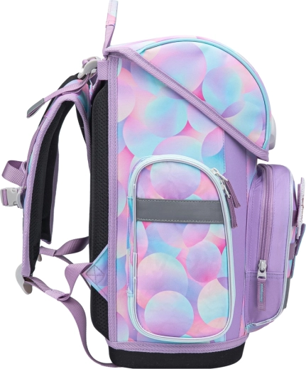 Училищният комплект BAAGL Ergo Candy е проектиран за максимален комфорт, ред и безопасност. Ергономично оформената раница с твърдо дъно запазва стабилна форма, ниското тегло до 1200 g щади гърба, а водоустойчивият материал защитава учебните пособия при всякакво време. Интуитивното магнитно закопчаване Fidlock позволява на децата бързо отваряне и затваряне с една ръка.