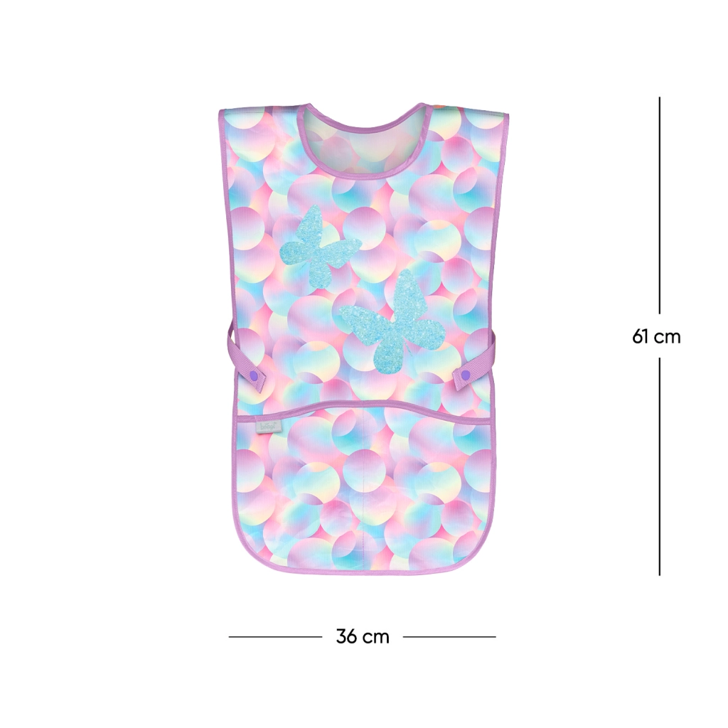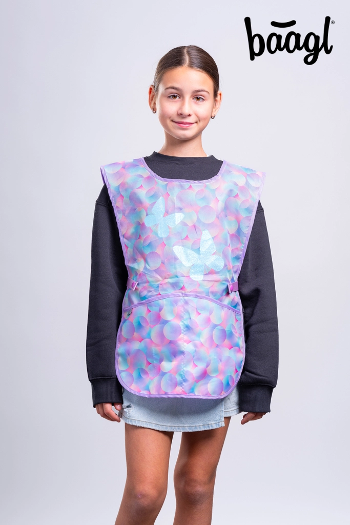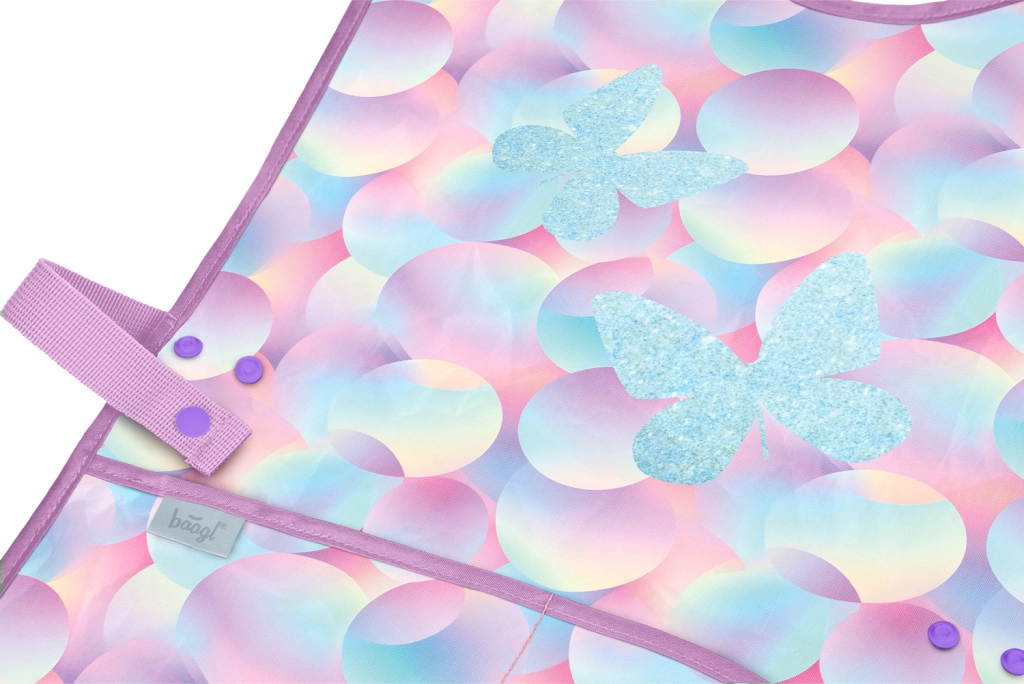 Дайте свобода на децата при творчество без притеснения от петна. Детската престилка BAAGL Candy с нежен пастелен десен и пеперуди е идеална за час по изобразително изкуство, труд и техника и домашни занимания. Издръжливата, гладка повърхност се забърсва лесно и съхне бързо, така че е готова за следваща употреба за миг.