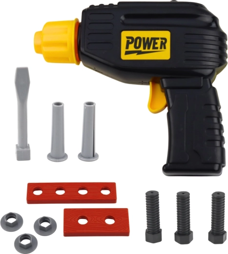 Детската бормашина, захранвана с 2× AA (не са включени), имитира завинтване и насърчава децата към творческа игра и трениране на фината моторика.