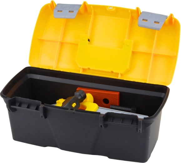 Здравата кутия с капак и закопчалки държи инструментите подредени, учи децата на ред и улеснява пренасянето.
