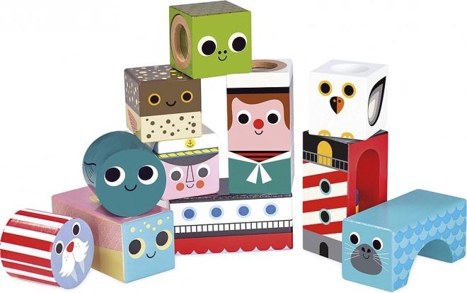 Комплектът съдържа 11 внимателно изработени кубчета от издръжливо дърво. Децата могат да подреждат кубчетата на кули, да ги сортират по мотиви или цветове и да създават свои морски истории – всичко това естествено развива креативността и фантазията. Компактната опаковка е подходяща и за път, и за детската стая.