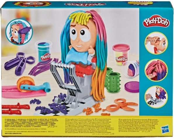 С този фризьорски комплект Play-Doh се раждат луди прически за нула време. Посадете фигурката на стола, натиснете и от главата израства цветна грива, която можете да подстригвате, решите и украсявате. Многоцветната моделина и забавните аксесоари превръщат всяко подстригване в нова история, пълна с фантазия.