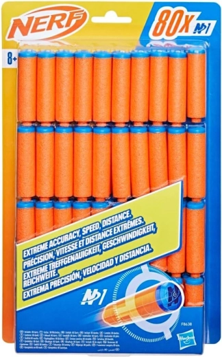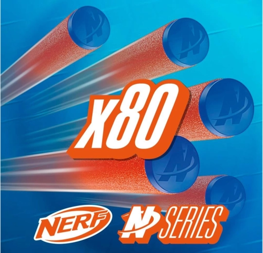 Комплектът от 80 бр. поддържа пълни пълнителите ви по време на интензивни престрелки, тренировки по прицелване и отборни игри. Стандартизираните размери осигуряват съвместимост със системите N1, така че лесно да използвате стрелите с подходящите изстрелвачи NERF.