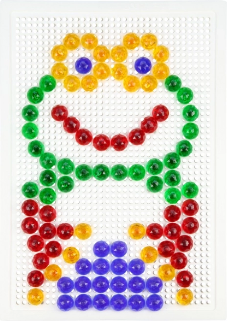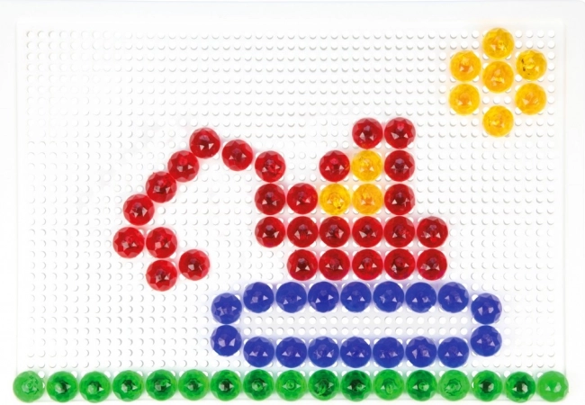 Тази цветна кристална мозайка позволява на децата да създават оригинални мотиви – от животни до къщички и превозни средства. Прозрачните колчета сияят красиво и насърчават към още подреждане, докато стабилната решетъчна подложка държи всичко сигурно на място.