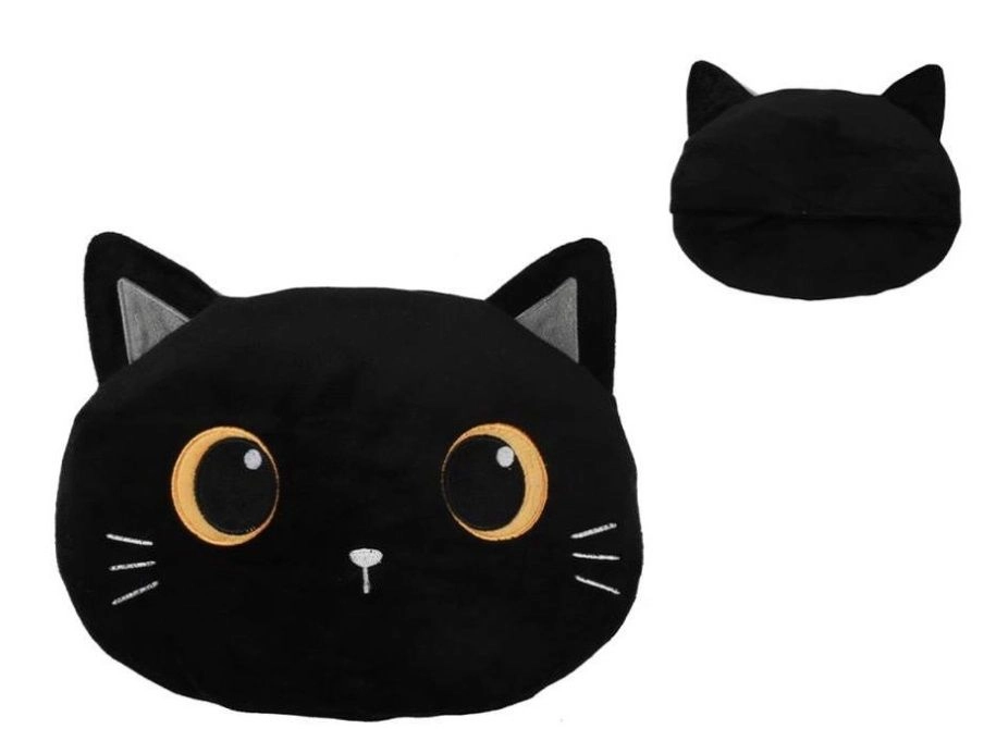 Много мек повърхностен плат, бродирани детайли на котешкото личице и приятна опора при отдих на дивана или в леглото.