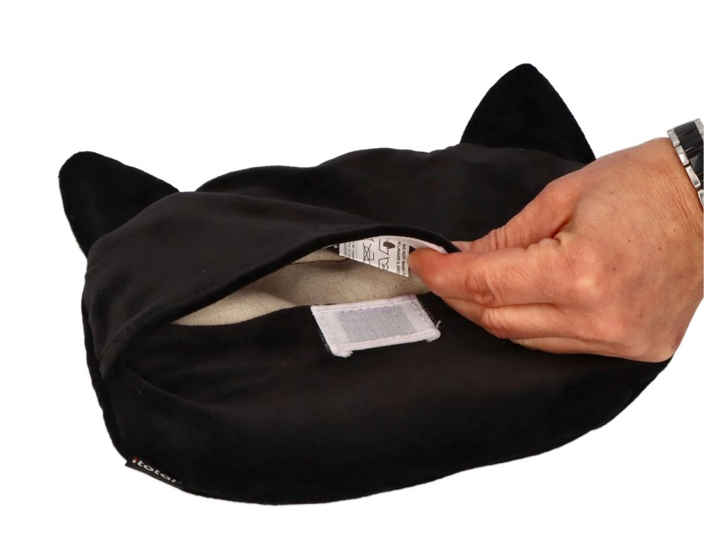Търсите сладък и функционален термофор? Черната котка iTotal комбинира нежен плюш с практична подвижна вложка, която лесно се затопля или охлажда. Идеален за облекчаване на напрежение, успокояване на коремчето, стопляне на ръцете или приятно разхлаждане в горещи дни.
