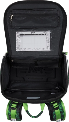 Част от комплекта е класически едноетажен несесер с два капака, малък джоб за дреболии и прозорче за учебната програма. След отваряне може да се разгъне изцяло, за да се ориентират децата бързо. Практичната торба с връзки с преден джоб с цип е идеална за пантофи, физическо и занимания в свободното време и може лесно да се прикрепи към раницата.