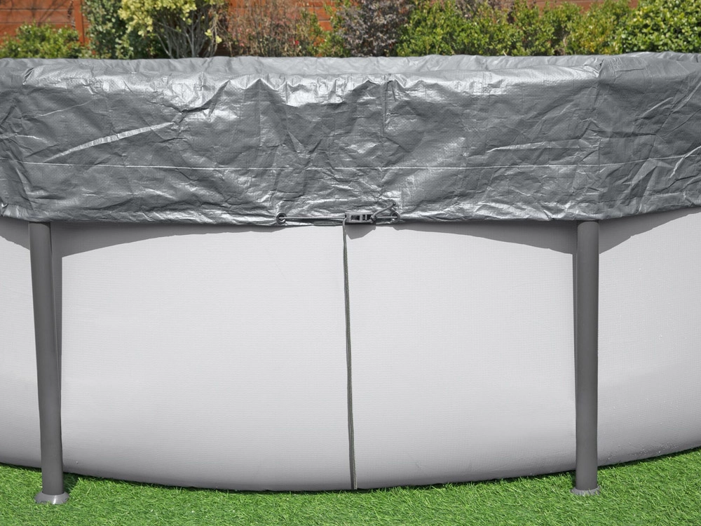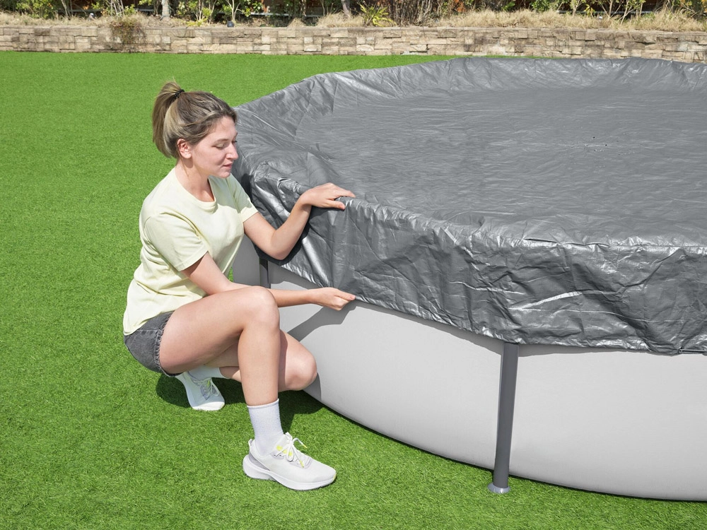 Усиленото покривало устоява на разкъсване и слънчево излъчване, така че издържа повече сезони и по-добре защитава водата в басейна.