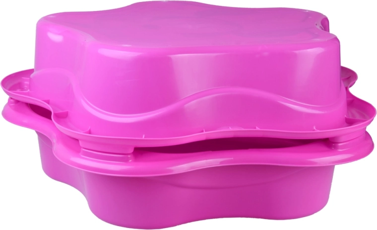Универсална 2-в-1 – едната половина служи като пясъчник, а другата като плитък басейн. При затваряне се получава практичен капак, който защитава съдържанието от дъжд, листа и животни. Благодарение на леката, но здрава конструкция мидата се пренася лесно и бързо се подготвя за игра.