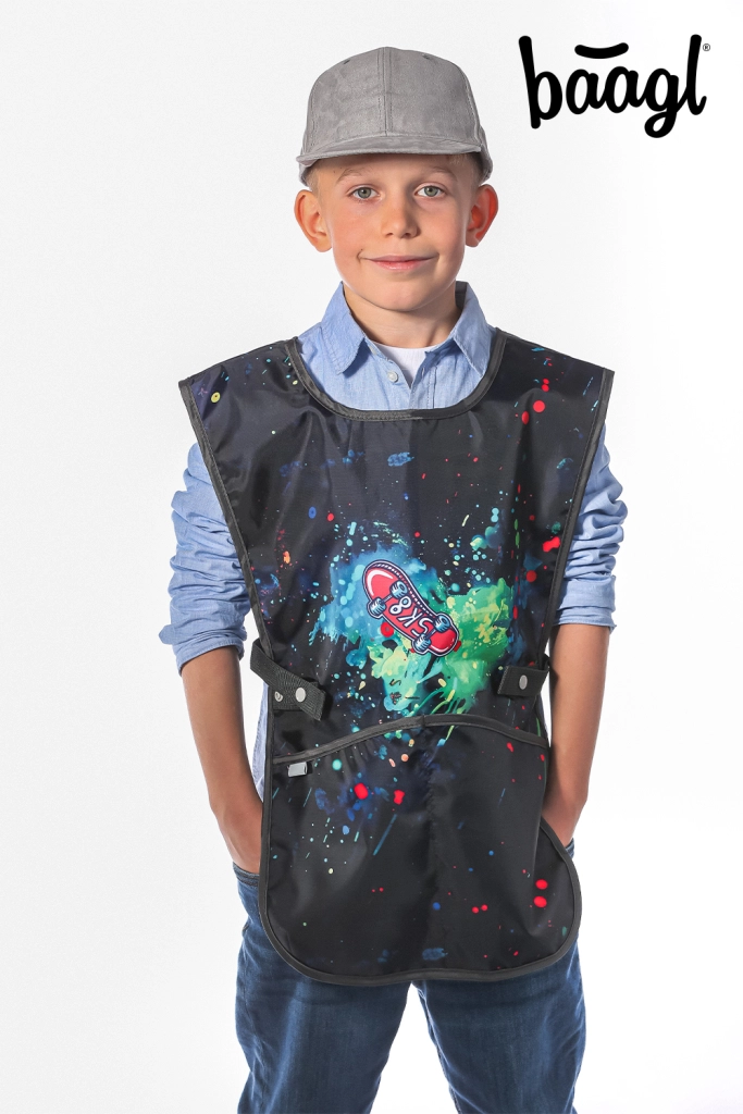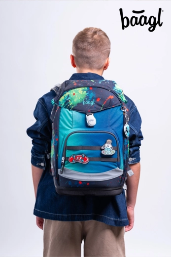 Училищният комплект BAAGL Airy Plus Chill е създаден за деца от 1. клас. Ергономичната раница със стабилно дъно и интегрирана алуминиева усилваща пластина предпазва гърба, а растящата гръбна система GROW позволява настройка в три размера – раницата „расте“ заедно с детето. Капакът с магнитно закопчаване се затваря сам и улеснява ежедневната употреба.