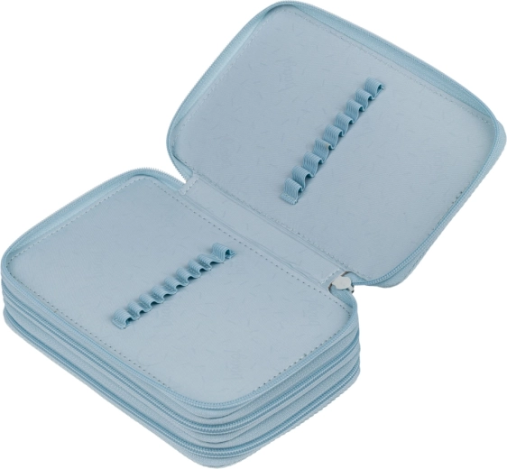 Добре обмисленото вътрешно оформление с гъвкави ластици побира сигурно както тънки, така и дебели писалки – от моливи и флумастери до химикалки, линийки и дребни помощни средства. Подсиленият гръб улеснява манипулацията при затваряне, обиколният цип осигурява безопасно съхранение на съдържанието, а заоблените ъгли защитават пенала и принадлежностите в него.