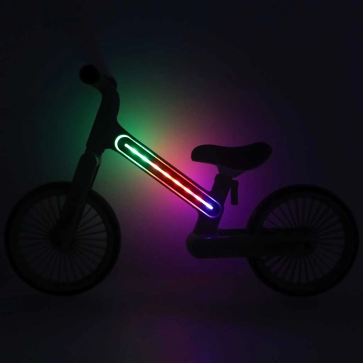 Интегриран LED лента в рамката (RGB) повишава безопасността при намалена видимост и придава ефектна визия на карането. Управление с бутон под рамката.