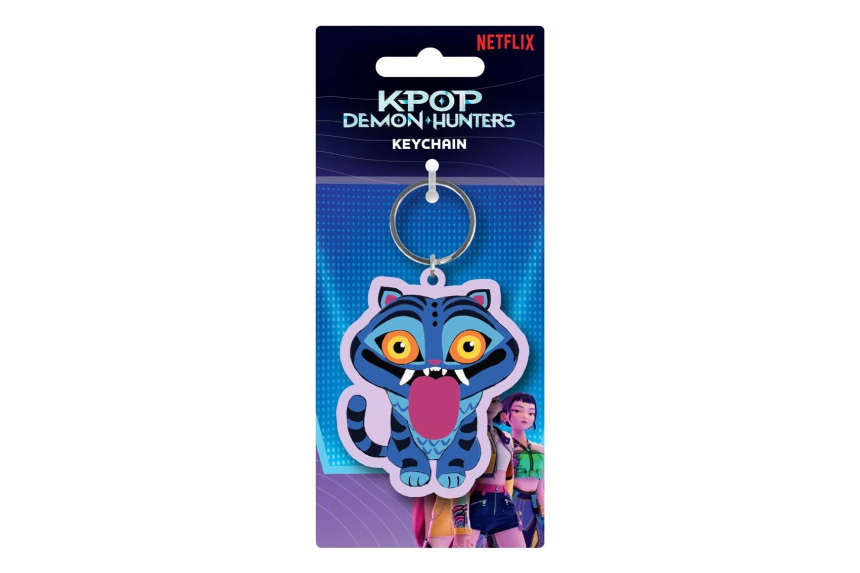 Стилен ключодържател с официален лиценз от Netflix, вдъхновен от сериала K-pop Demon Hunters. Изработен от мека и еластична гума, с метален халкичка за лесно закрепване към ключове, раница и чанта. Отличителният дизайн на син тигър с оранжеви очи и анимационен стил гарантира, че ще изпъкне като мърч за фенове и колекционери.