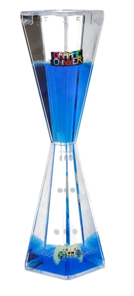 Насладете се на спокойния поток на капките в прозрачно тяло във форма на пясъчен часовник. Геловата течност плавно се стича от горната камера към долната и създава завладяващ ефект, който помага да се успокои умът и да се подпомогне концентрацията. Геймърската графика и надписът Game Over го правят идеален подарък за геймъри и почитатели на дизайнерски джаджи.