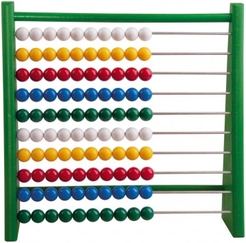 Сметалото е оборудвано с цветни пластмасови топчета, което прави ученето по математика визуално привлекателно преживяване за децата.
