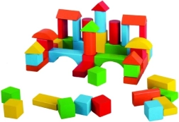 Цветният дървен конструктор съдържа 50 качествено обработени кубчета в различни форми за малки строители. Подпомага фината моторика, креативността и пространственото въображение. Произведен от безопасно дърво, отговаря на нормите на ЕС и е подходящ за деца от 2 години.