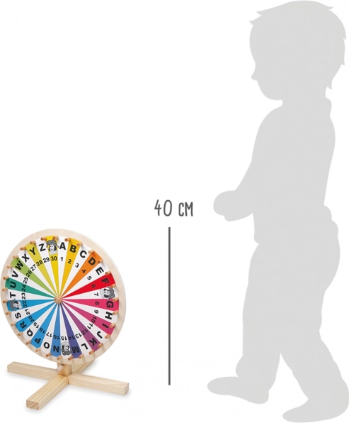 Дървеното колело на късмета small foot превръща всяка активност в вълнуваща игра. Благодарение на сегментите с букви A–Z, числа 1–30 и четири жокера е идеално за словесни игри, лотарии, образователни дейности и семейни състезания. Цветното оформление подпомага ориентацията и задържа вниманието на децата.