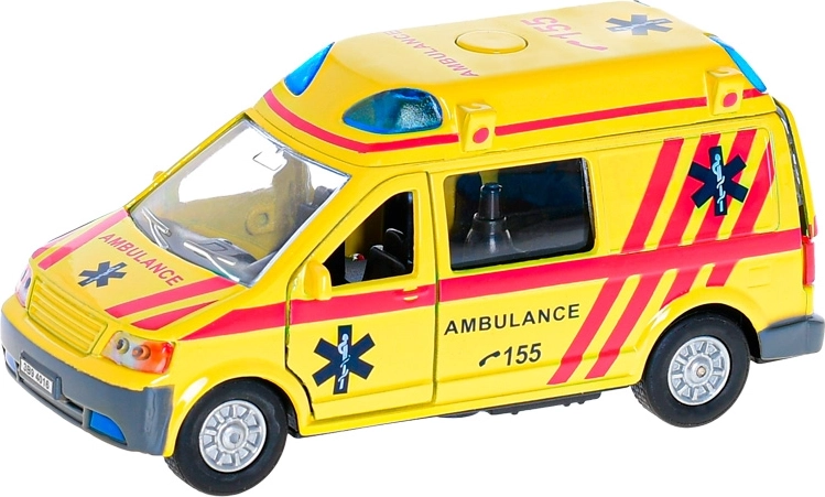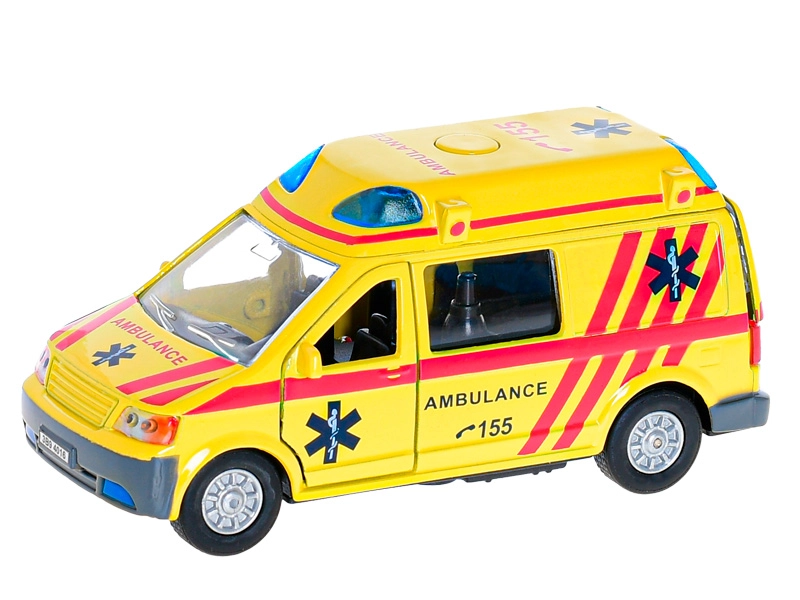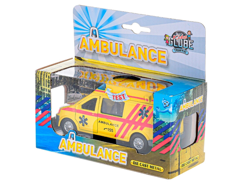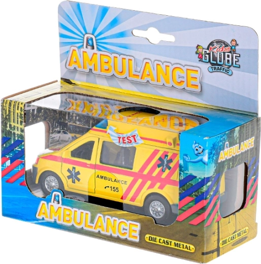 Тази детайлно изработена метална линейка Kids Globe Traffic носи на децата автентично изживяване в ролята на спасители. При натискане на бутона на покрива се активират мигащи светлини и сирена, което прави играта оживена като при истински излизания по спешност.