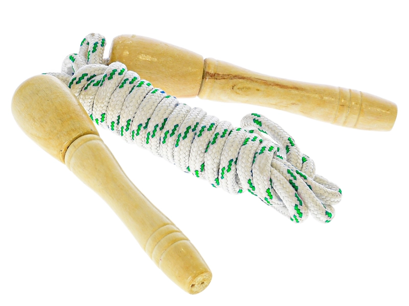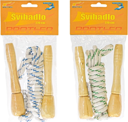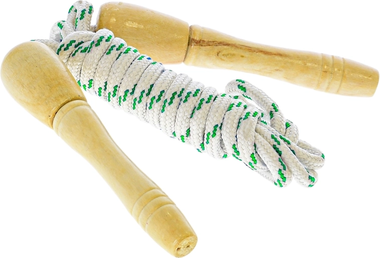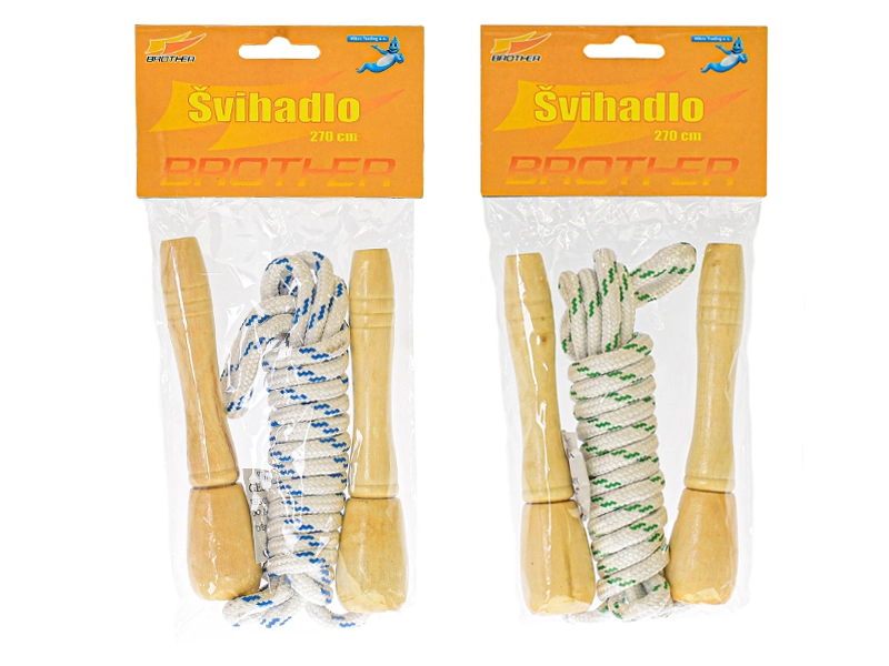 Забавно и издръжливо детско въже за скачане с дължина 270 см с удобни дървени дръжки. Идеално за активно движение, развитие на координацията и игра навън и у дома. Страхотен избор за самостоятелно скачане и забавление с приятели, предлага се в 2 цветови варианта.