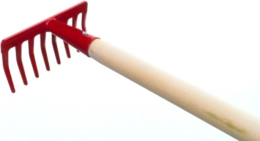 Здравите метални зъбци се справят с листа и леко изравняване на почвата, като същевременно остават леки за децата.