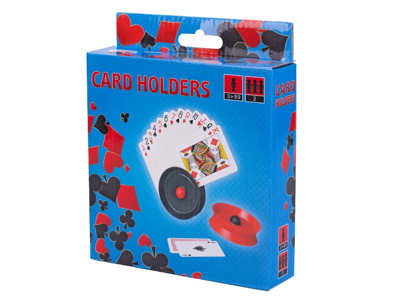 Насладете се на картовите игри с по-голям комфорт благодарение на практичните поставки за карти. Устойчивата пластмаса и компактният размер от 7 см осигуряват лесно хващане и по-добър обзор на ръката, което е особено полезно за деца и играчи с ограничена фина моторика. Комплектът е опакован в кутийка, така че поставките се съхраняват удобно и можете без усилие да ги вземете навсякъде със себе си.