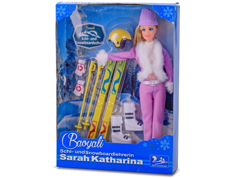 В комплекта е включено всичко необходимо за ски приключения: ски, щеки, ски каска, шапка, ръкавици и ски обувки. Куклата е налична в два модни цвята – розов и лилав. Внимание: конкретният цветови вариант не може да бъде избран при поръчка.