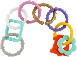 Този комплект от цветни рингове и форми е проектиран за най-малките. Благодарение на различните цветове, форми и текстури децата естествено развиват сетивното възприятие и координацията ръка–око. Отделните елементи се свързват лесно и стоят стабилно, така че децата могат да създават свои собствени вериги или да прикрепят играчки към детската количка или столчето за кола.