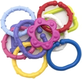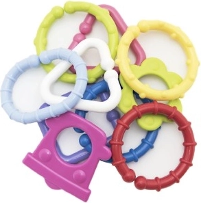 Открийте забавен комплект свързващи форми за най-малките: леки, издръжливи и цветни елементи, които се свързват лесно. Подпомагат фината моторика, сетивното развитие и логическото мислене, като същевременно служат като безопасно дрънкалo и гризалка за бебета от 0 месеца.