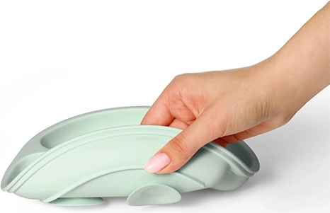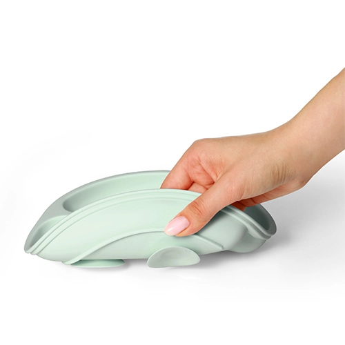 Чинията е изработена от висококачествен, безопасен за здравето силикон, приятен на допир, издръжлив и лесен за поддръжка – миене в съдомиялна и затопляне в микровълнова фурна. Ергономичната форма подпомага развитието на фината моторика и естественото усвояване на самостоятелното хранене.